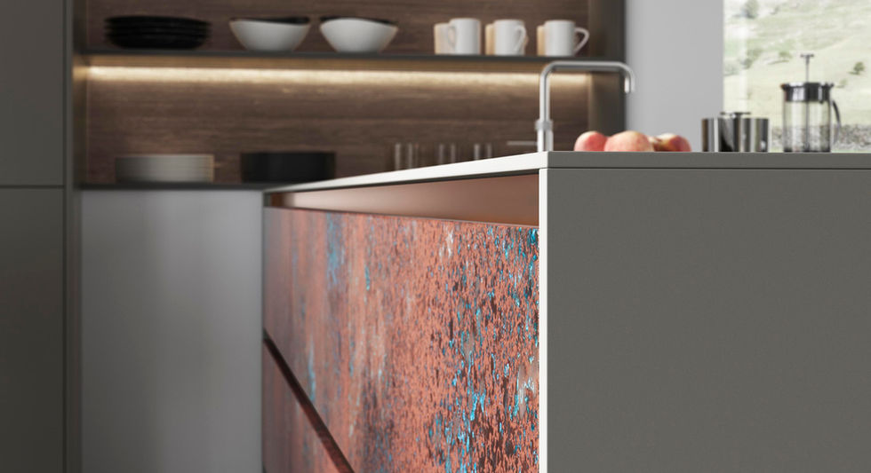 Ferro is a slab door with a metallic paint finish. Ferro offers slab door styling, likely with a more industrial or modern lean. Clean surfaces, minimal detailing, and suitable for bold colour or metallic finishes for contrast
